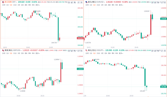非农数据又“爆表”!美联储加息50个基点却遭质疑?时间:2023-03-11 非农数据大超预期,但是数据公布美联储加息50个基点却暴跌至50%以下,什么情况? 北京时间周五21点30分,美国劳工部的数据显示,美国2月季调后非农就业人口增加31.1万人,较上月回落,但仍超出20.5万人的预期。美国2月失业率 3.6%,高于预期和前值的3.40%。 数据公布后,现货黄金短线涨幅扩大至7美元,现报1840.96美元/盎司。现货白银日内涨超1.00%,现报20.26美元/盎司。 美元指数DXY短线走低超30点,现报104.81,非美货币普遍走高,欧元兑美元EUR/USD短线走高近40点,英镑兑美元GBP/USD短线走高50点,美元兑日元USD/JPY短线走低近60点。美、布两油短线走高美0.5元,现分别报75.23美元/桶和81.15美元/桶。美国2年期至5年期国债收益率下跌超过17个基点。 美股股指期货直线拉升,纳指期货涨0.5%,标普500指数期货转涨0.3%,道指期货转涨。