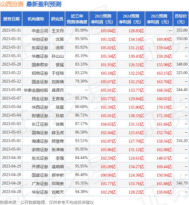 ÖйúÒøºÓ(11.600, 0.03, 0.26%)֤ȯ¹É·ÝÓÐÏÞ¹«Ë¾ÁõÀ´Õä½üÆÚ¶ÔɽÎ÷·Ú¾Æ(212.000, -4.13, -1.91%)½øÐÐÑо¿²¢·¢²¼ÁËÑо¿±¨¸æ¡¶2023ÄêÎÈÖÐÇó½ø£¬È«Ãæ·¢Á¦¡·£¬±¾±¨¸æ¶ÔɽÎ÷·Ú¾Æ¸ø³öÂòÈëÆÀ¼¶£¬ÈÏΪÆäÄ¿±ê¼ÛλΪ290.80Ôª£¬µ±Ç°¹É¼ÛΪ210.81Ôª£¬Ô¤ÆÚÉÏÕÇ·ù¶ÈΪ37.94%¡£