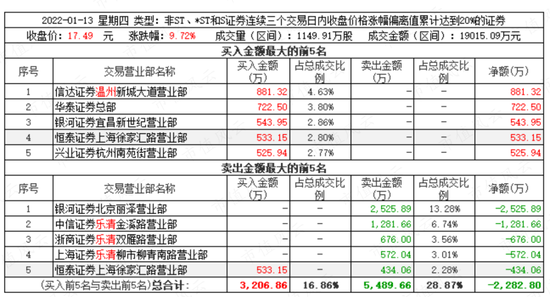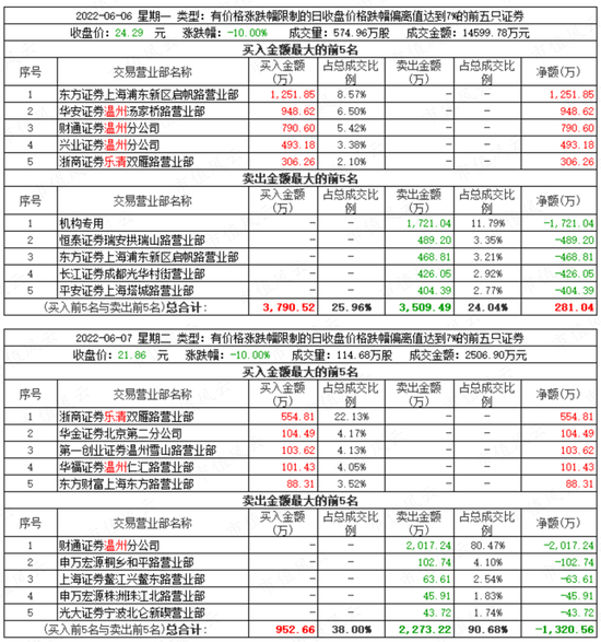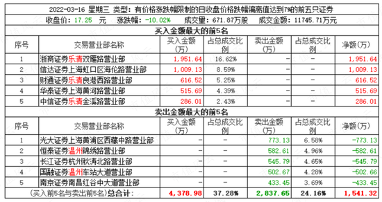¡¡¡¡µ±ÈÕµÄÁú»¢°ñÂòÈëǰÎåϯλÖÐÓÐ3¸öÀ´×ÔÀÖÇåÊУ¬ºÏ¼ÆÂòÈë2854ÍòÔª£¬Õ¼µ±Èճɽ»¶îµÄ24.3%£»Âô³öǰÎåϯλÖÐÓÐ2¸öÀ´×ÔÎÂÖÝ£¬ºÏ¼ÆÂô³ö1085ÍòÔª£¬Õ¼µ±Èճɽ»¶îµÄ9.2%¡£