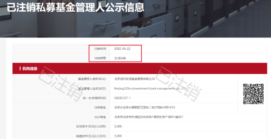 不过,中基协信息显示,资舟投资已在2020年6月选择主动注销私募证券投资基金管理人资格。