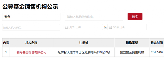 天眼查信息显示,资舟基金销售有限公司成立于2016年,曾经名为资舟财富管理咨询公司,注册资本为5000万元,2017年9月获得业务核准。