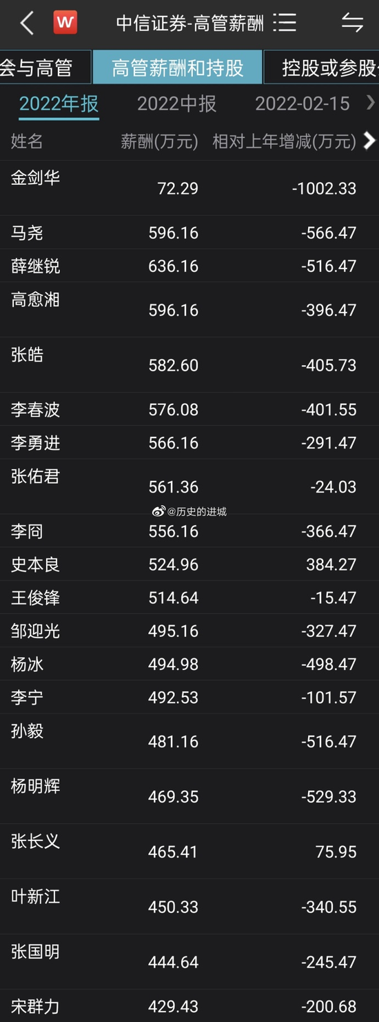 ¡¡¡¡Í¬Ê±£¬Öнð¹«Ë¾(40.210, -0.54, -1.33%)¸ß¹ÜÒ²³öÏÖ´ó·ù½µÐ½£¬2022Äê¶¼à¸ßÄê¶Èн³ê×ܶîΪ4126.20ÍòÔª£¬ËõË®5315.40ÍòÔª£¬½Ï2021Äê9441.6ÍòԪͬ±ÈÏ»¬56.30%£¬³ÉΪÅû¶Êý¾ÝÖнµ·ù×î´óµÄȯÉÌ£¬³¬¹ý¡°Ò»¸ç¡±ÖÐÐÅ֤ȯµÄ37.51%¡£