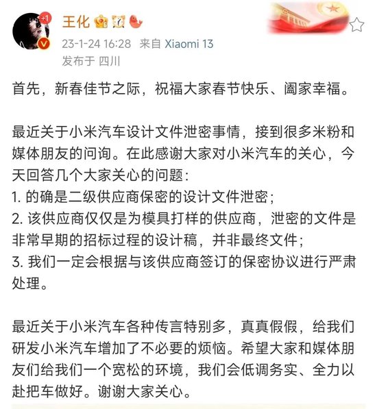 ¡¡¡¡Ð¡Ã×¼¯ÍŹ«¹Ø²¿×ܾÀíÍõ»¯¶ÔÓÚÍø´«Ð¡Ã×гµµýÕյĻØÓ¦£¬½ØÍ¼×ÔÍõ»¯¸öÈË΢²©