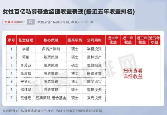 另外,思勰投资李苏苏、白鹭资管张晨樱、歌斐诺宝宁冬莉、睿璞投资邵红慧、玄元投资贺佳瑶也都是拥有名校背景的女性私募基金经理代表,并在投资中取得了较好的成绩。