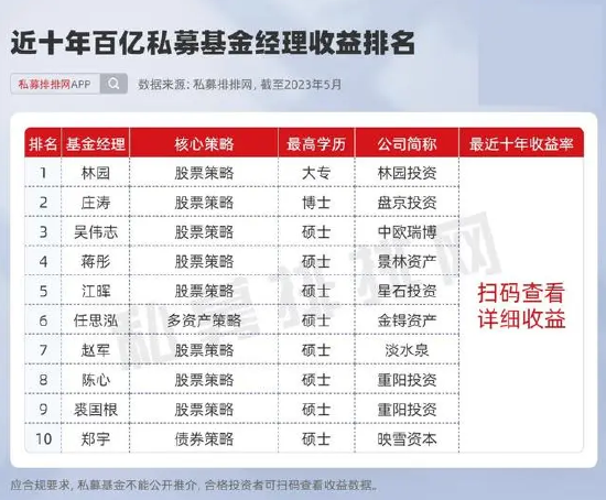 另外,拥有中国人民大学背景的庄涛、中欧国际工商学院背景的吴伟志近十年也有不错的业绩表现,分别达***%、***%。
