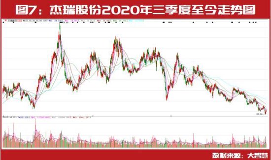杰瑞股份是是一家油田服务企业,主营油田专用设备制造,油田、矿山设备维修改造及配件销售和海上油田钻采平台工程作业服务。从公司业绩来看,2023年一季度实现营业收入22.8亿元,同比增长24.92%;实现归母净利润3.51亿元,同比增长61.13%。不过,与业绩的增长相悖,杰瑞股份股价却自去年8月底以来持续跌跌不休,至今累计跌幅已超过40%(见图7)。