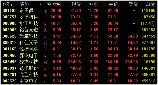 值得注意的是,东田微今日“20cm”涨停创历史新高,公司近日表示,公司主要产品为摄像头滤光片和光通信元件,可广泛地应用于消费类电子产品、车载摄像头、安防监控设备以及5G网络建设、数据中心等光通信行业的多个终端领域,下游应用领域十分广泛。