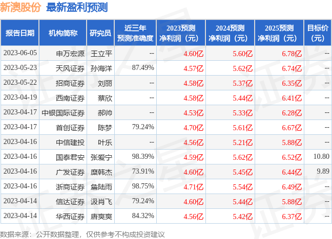 最新盈利预测明细如下: