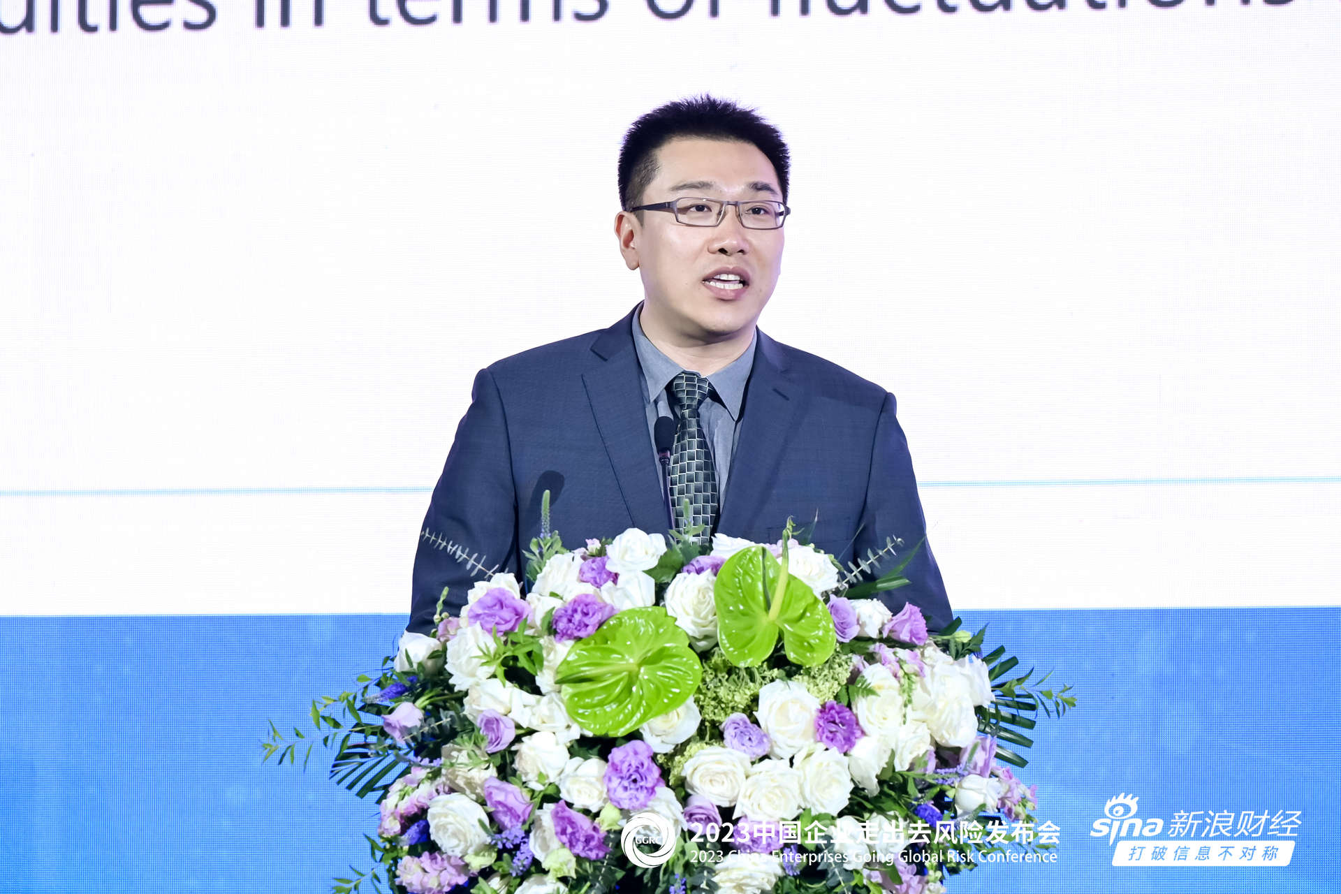 在上午举行的“2023中国企业走出去风险发布大会”上,吉林外国语大学国际商务学院教授蔺睿发表题为《对影响企业“走出去”的国际金融风险观察》的演讲。