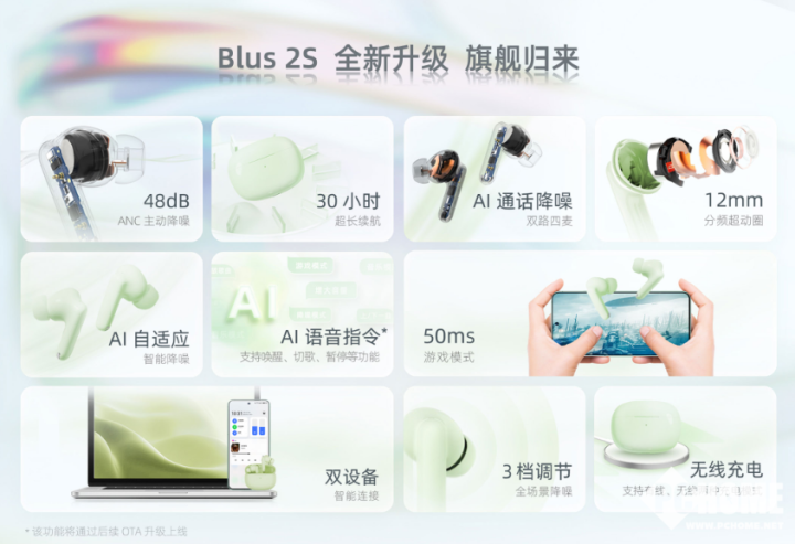 此外,魅蓝Blus 2S主动降噪*支持双设备连接、拥有低至50ms的延迟,游戏时音画更加同步。