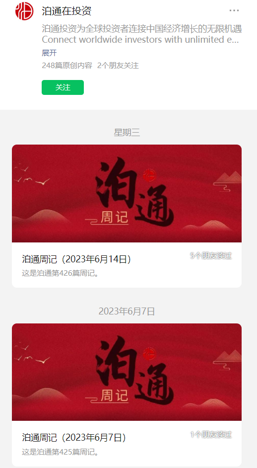就在6月14日,泊通投资公众号还刊发着卢洋写于6月13日夜的一篇“泊通周记”。其中,他对近期美联储加息以及带来的影响进行了分析,认为6月联储大概率会暂停加息。