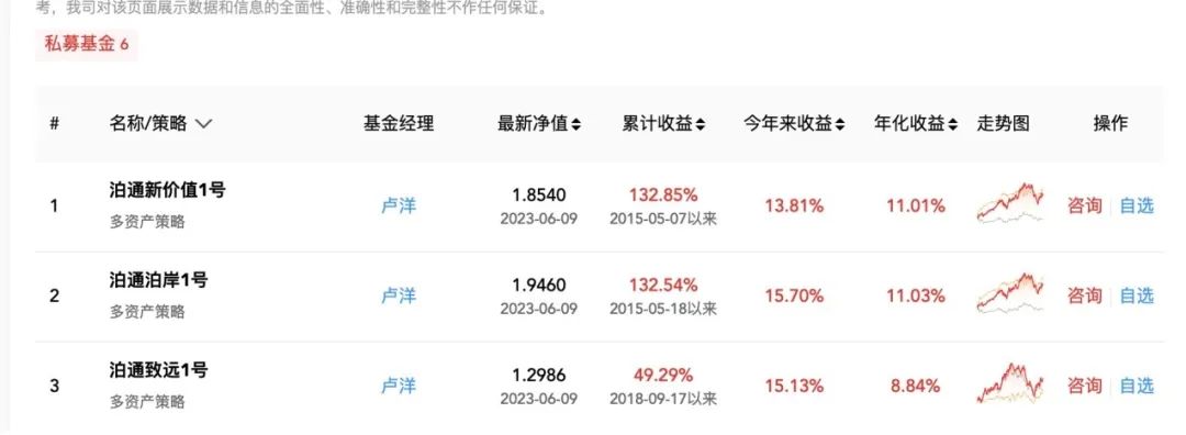 私募排排网数据显示,截至6月9日,卢洋管理的三只基金今年以来收益率分别为13.81%、11.03%和15.13%。不论是长期还是短期表现,其产品都有明显的超额收益。