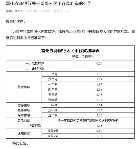 6月18日,据北京商报记者梳理,近日包括雷州农商行、惠来农商行、鹤山农商行、新乡中原村镇银行、雅安雨城惠民村镇银行、阳城三禾村镇银行、扶绥深通村镇银行在内的多家银行宣布下调人民币存款挂牌利率。