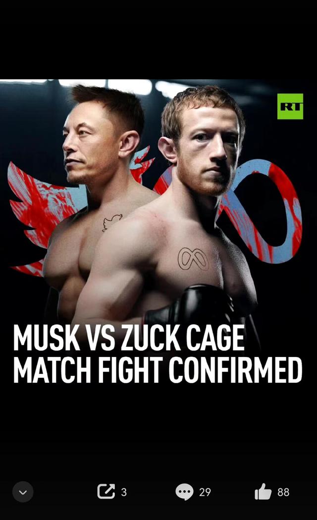推特网友都对两人的“约架”的真实*到好奇。对此,马斯克发推表示,“如果是真的,我会去。”据《赫芬顿邮报》报道,Facebook母公司Meta的发言人伊斯卡·萨里克也对媒体表示,已经确认,扎克伯格的回复不是在开玩笑。