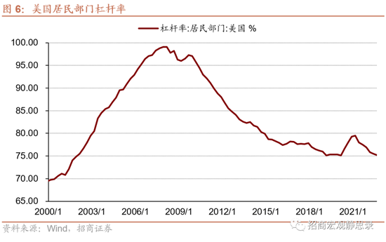 2020年低利率环境下,美国科技股暴涨、上市公司回购、企业大量融资,当下融资到期、利率高企,确实是今年的风险点(之一),类似2000-2001年。但可喜的是,疫前美国处于居民去杠杆阶段,疫后居民杠杆率上升幅度亦有限,过去十余年高杠杆的领域主要是金融体系并未涉及地产等实体部门,进而即便爆发流动性危机也不至于酿成系统性风险,只要美联储等央行货币政策转向就能化解。