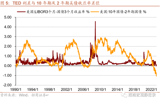 正如我们在2022年10月12日报告《海外距离流动性危机有多远?》中指出,历史上,每次10年期与2年期美债收益率差值转负,也即:美债曲线倒挂后不久,TED利差都会突破1%。1990年3月初美债曲线倒挂、11月下旬TED利差升破1%;1998年5月底美债曲线倒挂,10月初TED利差升破1%;2000年2月初美债曲线倒挂,5月底TED利差升破1%;2005年底美债曲线倒挂,2007年8月初TED利差升破1%;2019年8月底美债曲线短暂倒挂,次年3月中旬TED利差再度升破1%。看上去,一旦美债曲线倒挂,流动性危机虽会迟到(时滞4-20个月),但从未缺席。2022年4月初美债曲线曾短暂倒挂,2022年7月初至今始终倒挂,当下仍在这种“风险期”。因此,即便本次不发生流动性危机,未来几个月也有可能发生。