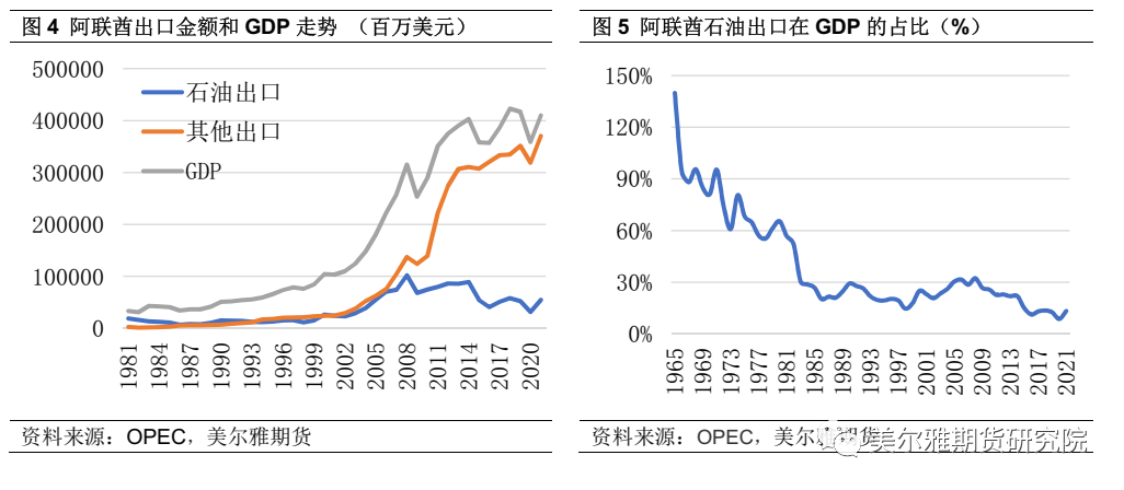 热点解读:如果阿联酋退出OPEC?时间:2023-03-11         上周原油市场多头氛围浓厚,当媒体报道阿联酋考虑退出OPEC的消息,油价一度下跌2美元/桶,之后消息被证伪,油价上演V型回升,并突破震荡区间。说明阿联酋如果增产将对于石油市场将带来实质性利空影响。 阿联酋于1967年加入OPEC,目前是组织内第三大产油国,排在沙特和伊拉克之后,产量保持在300万桶/天的水平,出口约230万桶/天,出口目的地以中国和亚太地区为主。 本文从阿联酋拥有的闲置产能、对石油出口的依赖,以及地缘政治的角度,分析阿联酋退出OPEC的动机,以及对原油市场的影响。 按照2023年1月份的产量测算,目前阿联酋的实际产量305万桶/天,已达到减产配额的上限,但远远低于国际能源署(IEA)评估该国的每天412万桶的可持续产能,阿联酋的剩余产能约为108万桶/天,仅比沙特的闲置产能少80万桶/天。 阿联酋保持在石油上游开发的投入,在2010年以及2015年,阿联酋石油钻井的完井数量有两次明显的抬升,OPEC组织内部,阿联酋全年完井数从排名靠后的水平跃升至TOP3,截至2021年,阿联酋完井数量254个,排在科威特380个/沙特314个之后,占OPEC总完井数量的16%。 ![]() 部分OPEC成员国由于投资不足、制裁和基础设施被破坏,产量配额超过了他们的生产能力,因此组织内部关于增加生产配额的提议已基本平息。近期IEA发现,阿联酋在2月份的最新产量为每天323万桶,同时消息称阿联酋正在努力到2027年将其闲置产能提高到每天500万桶。 阿联酋是少数几个拥有剩余闲置产能,并正在努力增强闲置产能的OPEC成员国之一,如果阿联酋退出OPEC组织,则将不再受减产计划所制约,可能短期内会有100万桶/天的原油供应量投放市场,对市场的影响力,堪比2022年初美国释放1.8亿桶战略石油储备,当时白宫公布SPR释放周期约6个月,两者相同的是供应增量都约为100万桶/天,不同的是,阿联酋的供应边际增量是长期投放。 ![]() 二 阿联酋对石油出口的依赖较低 产油国通常面临的困境——高油价和高产量不可兼得,依赖自然资源的经济模式,使阿拉伯国家居于世界体系的边缘,石油及其他矿产品几乎成为它们连接世界经济的唯一纽带。尽管石油开采成本并不高,但由于大部分产油国的经济结构单一,国内经济对石油的严重依赖,需要依靠石油出口获取外汇,来换取必须的生产资料,维持国家的财政收支平衡。 多年来阿联酋把发展贸易和经济多元化提升至国家战略层面,是海湾国家“经济转型”的典范。阿联酋GDP从2000年-2015年期间有一个飞跃式增长,主要是由除石油以外其他出口增长所贡献,石油出口增长贡献有限,国家经济对石油出口的依赖逐步下滑,截至2021年,石油出口金额占比GDP的13%,而沙特的石油出口占比GDP约24%水平。 ![]() 阿联酋的历史盈亏平衡油价在60-70美元/桶,近一年由于地缘冲突引发的供应风险推升油价在高位运行,阿联酋销售官价都在80美元/桶以上,近期受中国需求复苏的预期支撑,阿联酋同其他产油国已连续两月上调出口官价。 石油出口价格运行在财政盈亏平衡油价的上方,使得阿联酋增加石油产量的动机进一步加强,同时,如果因为增产造成的油价下滑,相较于其他产油国家,阿联酋受到的影响较小。 ![]() 三 地缘方面的因素 前文从石油生产的角度来分析阿联酋退出OPEC的动机,除此之外,阿联酋与OPEC组织领头者沙特的不睦由来已久。 一方面两国存在长期的政治摩擦,在也门战争、卡舒吉被杀以及与周边国家关系方面,阿联酋与沙特的分歧不断扩大。另一方面存在石油生产冲突,据称,阿联酋反对OPEC+于2022 年10月做出的减少石油产量的决定,而是希望提高产量并遵守美国当时的要求。此后,阿联酋一直试图获得OPEC+的批准以增加产量。 四 如果阿联酋退出OPEC 从石油市场供需平衡的角度,阿联酋如果退出OPEC组织并增加石油产出,有利于填补欧美制裁俄罗斯石油出口以及页岩油可能减产的供应缺口,从而平抑高油价带来的通胀问题,对于西方国家无疑是一剂良药。 近期美国页岩油生产商称二叠纪盆地的石油产量将在两年内达到峰值,美国石油天然气公司雪佛龙和欧洲公司可能会增加在委内瑞拉的石油产量,这一系列事件表明欧美对原油供应紧缺的担忧。OPEC内拥有闲置产能且与西方政治分歧较小的,排除沙特和伊朗,只剩下阿联酋。  |