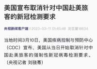 据央视消息,当地时间3月10日,美国疾病控制与预防中心(CDC)宣布,美国从当日开始取消针对中国赴美旅客的强制性新冠病毒检测要求。 此前,在3月8日的外交部例行记者会上,彭博社记者提问,美国计划最早于本周放宽对来自中国的旅客的新冠病毒检测限制。中方对此有何回应? 外交部发言人毛宁表示,中方始终认为各国的防疫措施应当科学、适度。我们希望有关国家同中方一道,为中外人员往来提供更多的便利。